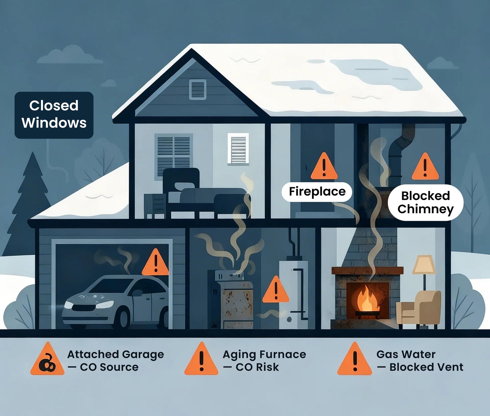 Any fuel-burning system produces CO. One blocked vent, one malfunction, one crack—and it's in your air.